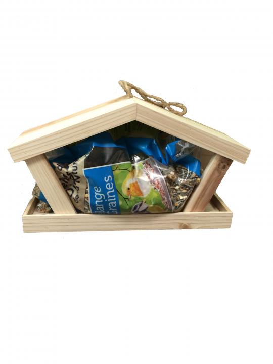 Distributeur d'aliments “Mangeoire Tramontane en pin 100% FSC® + 1kg de graines”