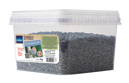 Le Tournesol noir est la graine de tournesol la plus riche en matières grasses ! Elle est très appréciée par les mésanges, les chardonnerets, les moineaux... durant la période hivernale. Les graines peuvent être disposées dans des mangoires mais aussi directement au sol pour certaines espèces, comme le pinson ou le rouge-gorge.