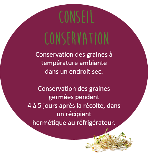 L’étape de la germination réalisée par l’eau & la chaleur, va permettre de décupler les nutriments de la graine, ce qui la rend très intéressante sur le plan nutritionnel. Concentrée en vitamines et enzymes, la graine germée vous offre son pouvoir énergétique toute l’année. La graine se déguste crue pour conserver tous ses bienfaits.