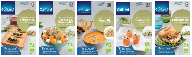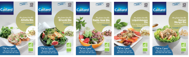 Une petite touche de fraîcheur colorée, à faire pousser chez vous, quand vous le souhaitez ! Pour les plus impatients, la germination se déroule en quelques jours seulement ! Caillard a sélectionné 10 variétés de graines et mélanges de graines BIO, conditionnées en sachets Doypack alimentaires qui apporteront fraîcheur et vitalité à vos plats.
