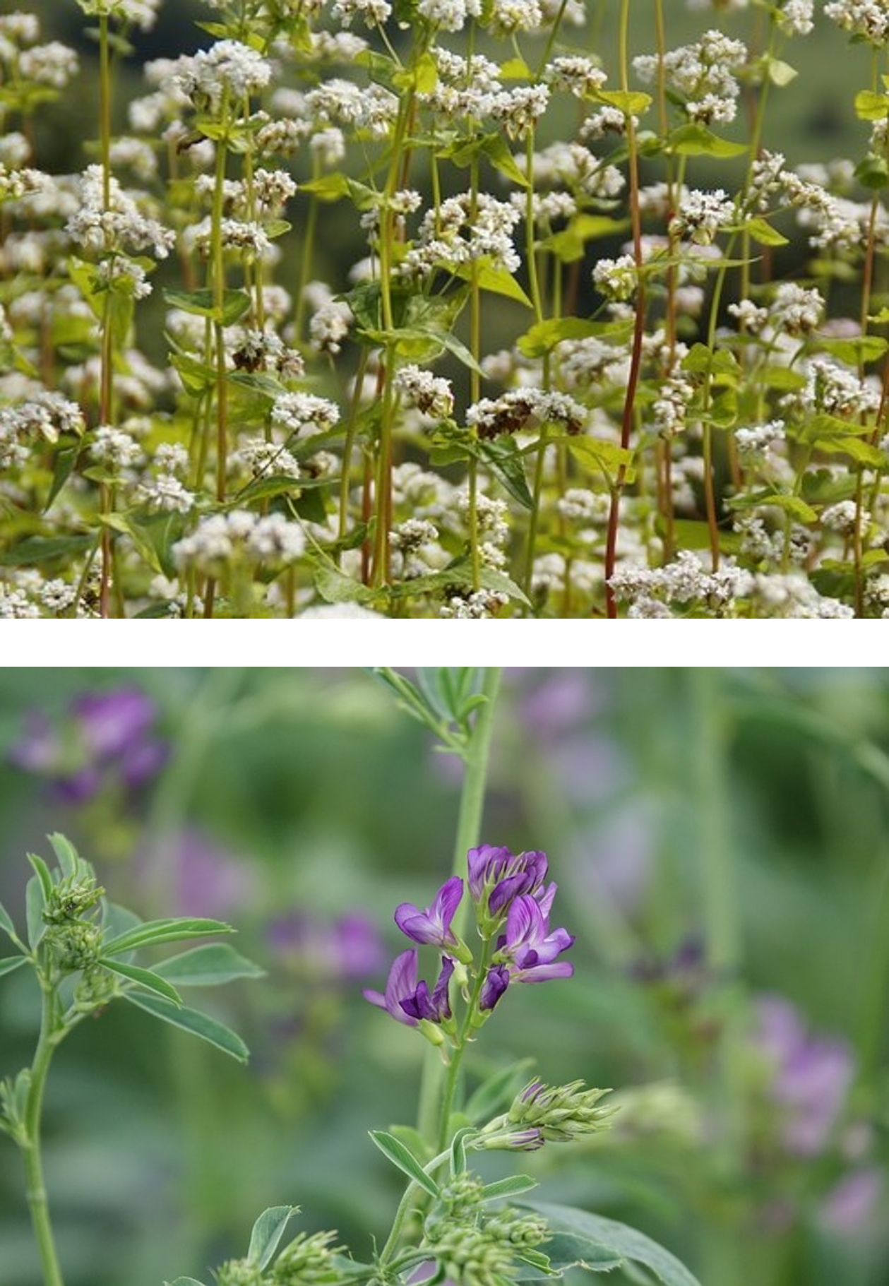 Cette annuelle à croissance rapide est rustique et d'installation rapide. Elle étouffe très bien les mauvaises herbes et aère le sol en profondeur grâce à son système racinaire développé. Idéal sur sol pauvre et acide, le sarrasin prélève les phosphates du sol, non assimilés par les autres cultures. Hautement mellifère, il attire et abrite de nombreux insectes pollinisateurs et auxiliaires, alliés importants dans la lutte contre les nuisibles. Sa destruction par le gel évite le fauchage avant l'enfouissement. Favorable avant toute culture potagère.