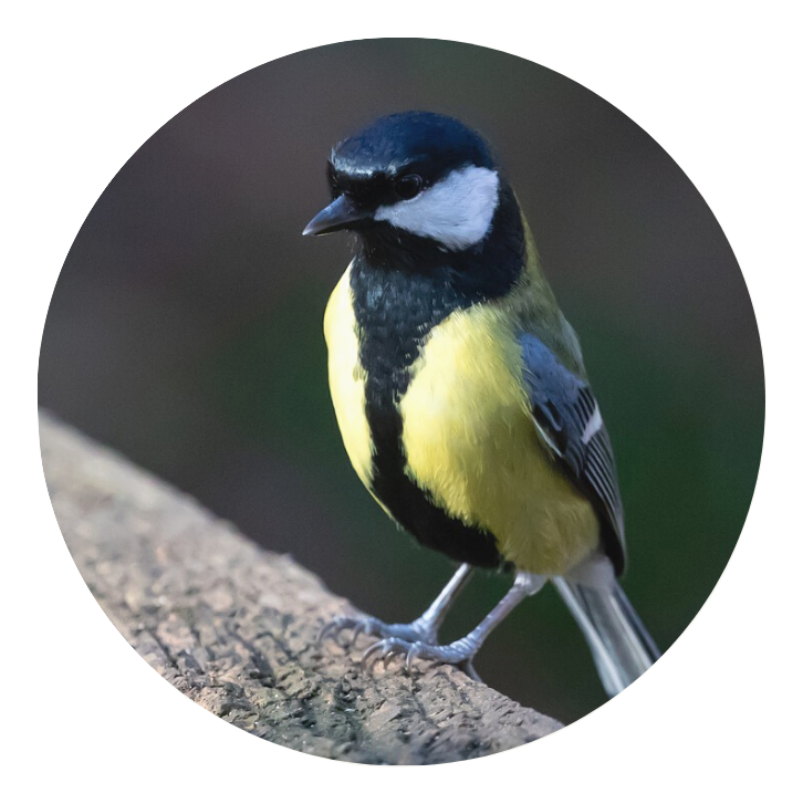 La Mésange charbonnière (Parus major) : elle ressemble superficiellement à la Mésange bleue, mais elle est un peu plus grande, sa tête est noire avec des joues blanches, et elle a une « cravate » noire qui se détache sur le dessous jaune. Elle est souvent moins commune et plus « calme » que la Mésange bleue. Elle raffole aussi des graines de tournesol.