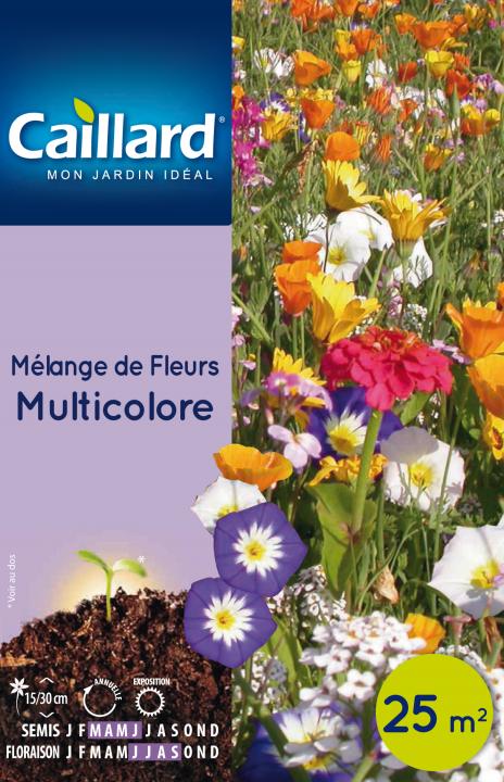 Mélange de fleurs aux multiples couleurs de 15 à 30 cm de hauteur. Son port tapissant en fait un incontournable des bordures et rocailles. La diversité de ce mélange permet à la floraison d’être prolongée : belle de jour, thlaspi, eschscholzia, souci nain, julienne de Mahon, godétia, œillet de Chine, zinnia nain Pépito, alysse, linaire, sanvitalia, silène, dimorphotéca...