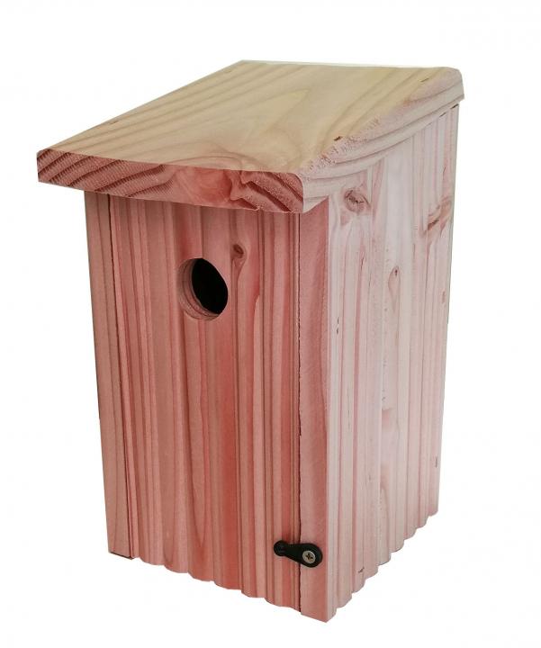 Le nichoir SAVOIE pour mésanges bénéficie d'un trou d'envol de 28 mm, permettant d'accueillir les espèces à petit gabarit comme les mésanges bleues, nonnettes, huppées ou noires… Pin Douglas Naturellement imputrescible. Sans traitement chimique. Haute résistance aux intempéries. Toit ouvrant. Remplissage aisé. Nettoyage facile. Larges avancées pour protéger la nourriture.